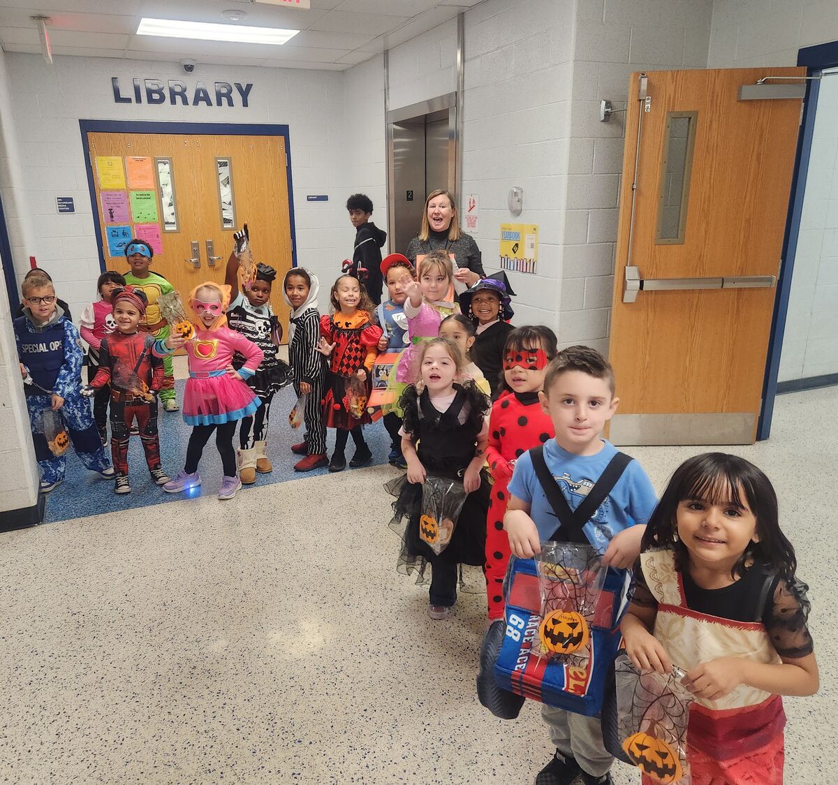 Our kindergarteners from Mrs. Darby, Ms. Deso, Ms. Fisher, Mrs. Hadden, Mrs. Lane, and Mrs. Shankarβs classes went trick-or-treating throughout the school today β showing off their amazing costumes and plenty of π Halloween spirit! π»
